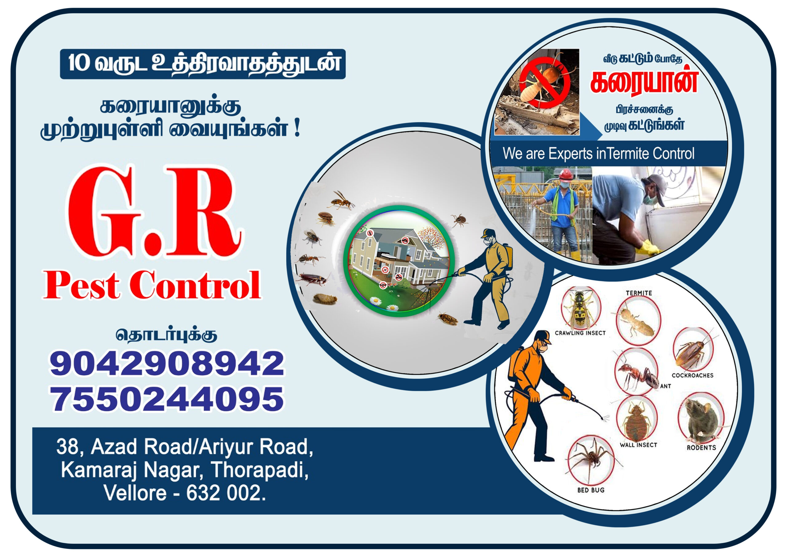 GR Pest Control offers reliable and effective pest control services to keep your spaces safe, clean, and pest-free. With 5 years of experience and a team of skilled professionals, we offer comprehensive protection against a wide range of pests, including rodents, termites, cockroaches, bed bugs, mosquitoes, and more.